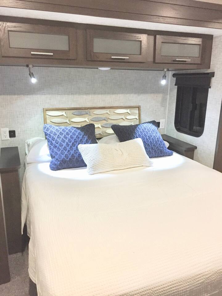 Exceptional stay, nestled within a private gated community (Key Largo Kampground and Marina) boasting 2 private beaches, boat slips, a boat ramp, heated pool, volleyball, playground, shuffleboard, convenience store, laundry area and much more. Step into a stylish, fully equipped 2-bed/2-bath RV with a spacious outdoor area featuring a grill, dining table, and patio lights for relaxed evenings. Enjoy complimentary 2 kayaks and 2 paddleboards for aquatic adventures.