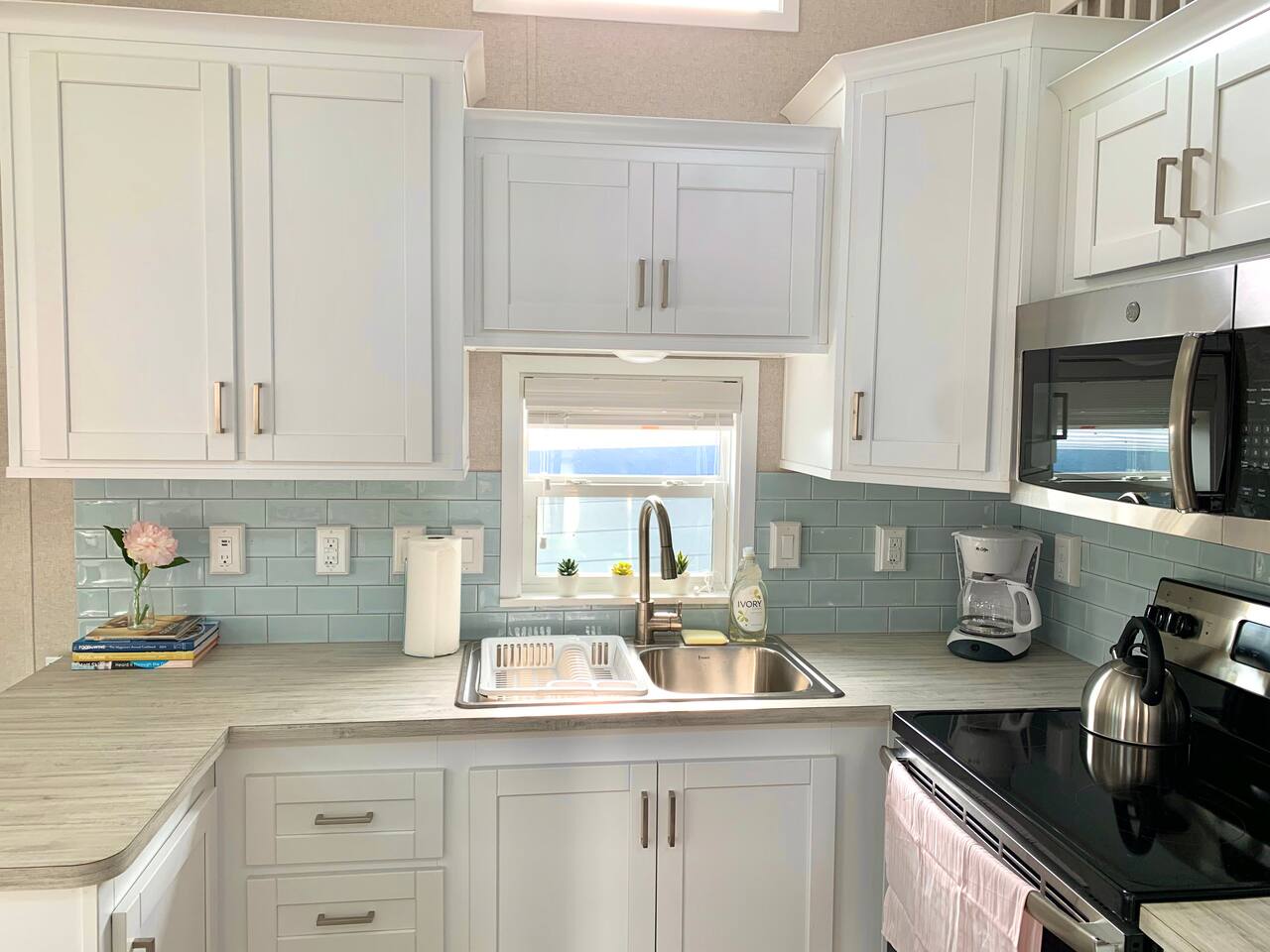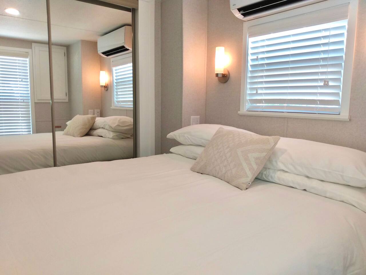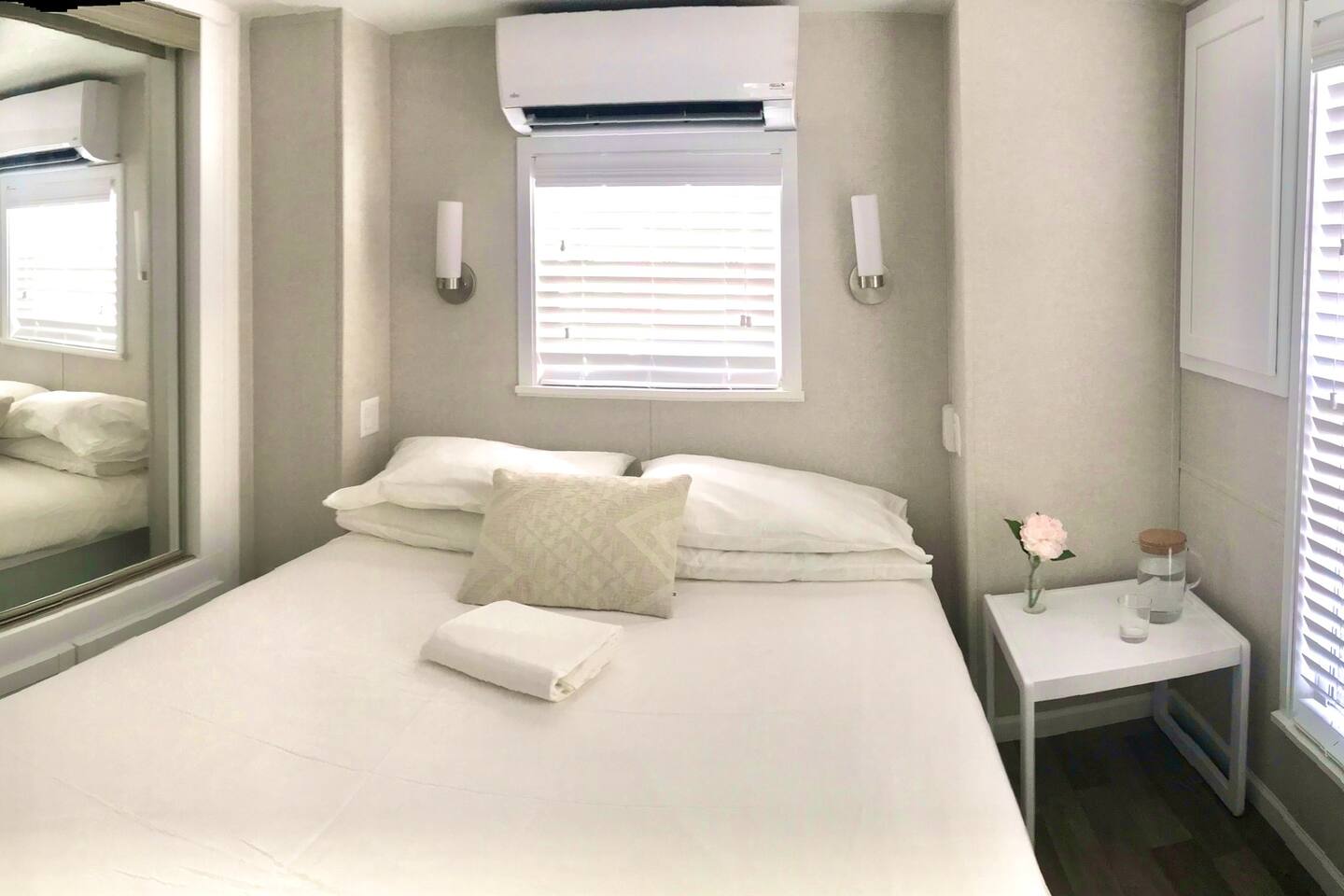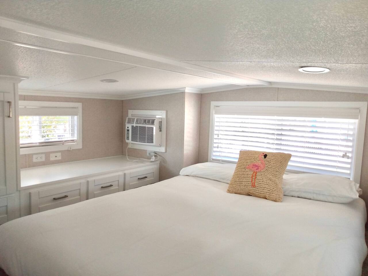 Discover the charm of our private community (Key Largo Kampground) 2 beach areas, heated swimming pool, beach volleyball, a children's playground, laundry facilities, and more. Indulge in the comfort of our tastefully decorated, modern 2BR/1.5BA waterfront tiny house complete w/ a private dock for your boat. Unwind on the spacious deck w/ a tiki hut, large dining table, lounge chairs, and a grill, perfect for relaxing evenings under the patio lights. 2 complimentary kayaks & 2 paddleboards.